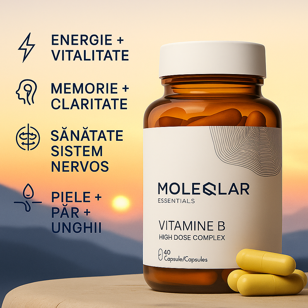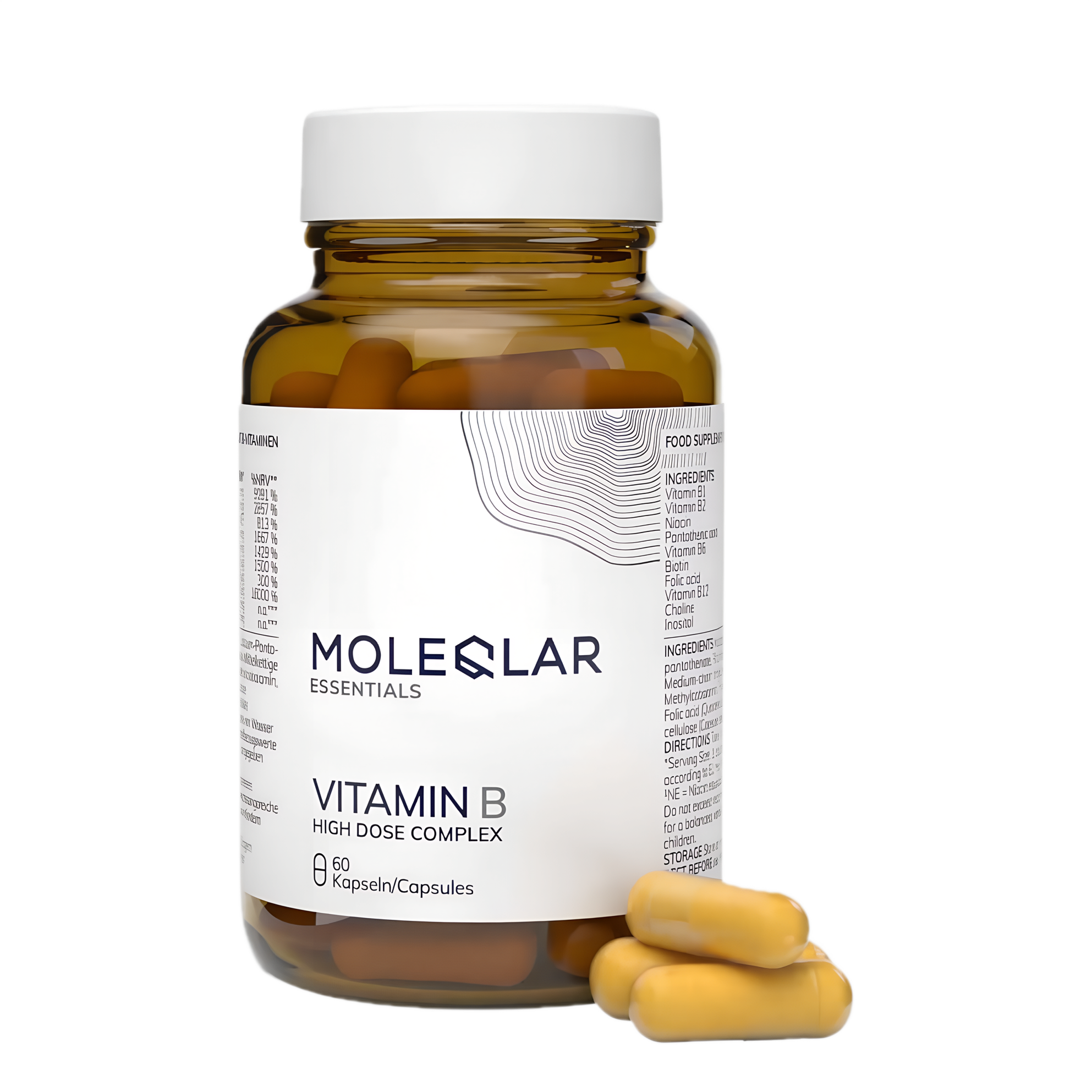 Complexul de vitamine B combină toate vitaminele B esențiale în doze optime. Rezultă 750mg de vitamine din B complex per capsulă. Complexul nostru de vitamine B în doze înalte conține toate cele opt vitamine B în forme bioactive și active – B1 (Tiamină), B2 (Riboflavină-5-Fosfat), B3 (Niacină), B5 (Acid Pantotenic), B6 (Piridoxal-5-Fosfat), B7 (Biotină), B9 (Acid Folic) și B12 (Metilcobalamină) – suplimentate cu colină și inozitol ca cofactori naturali.