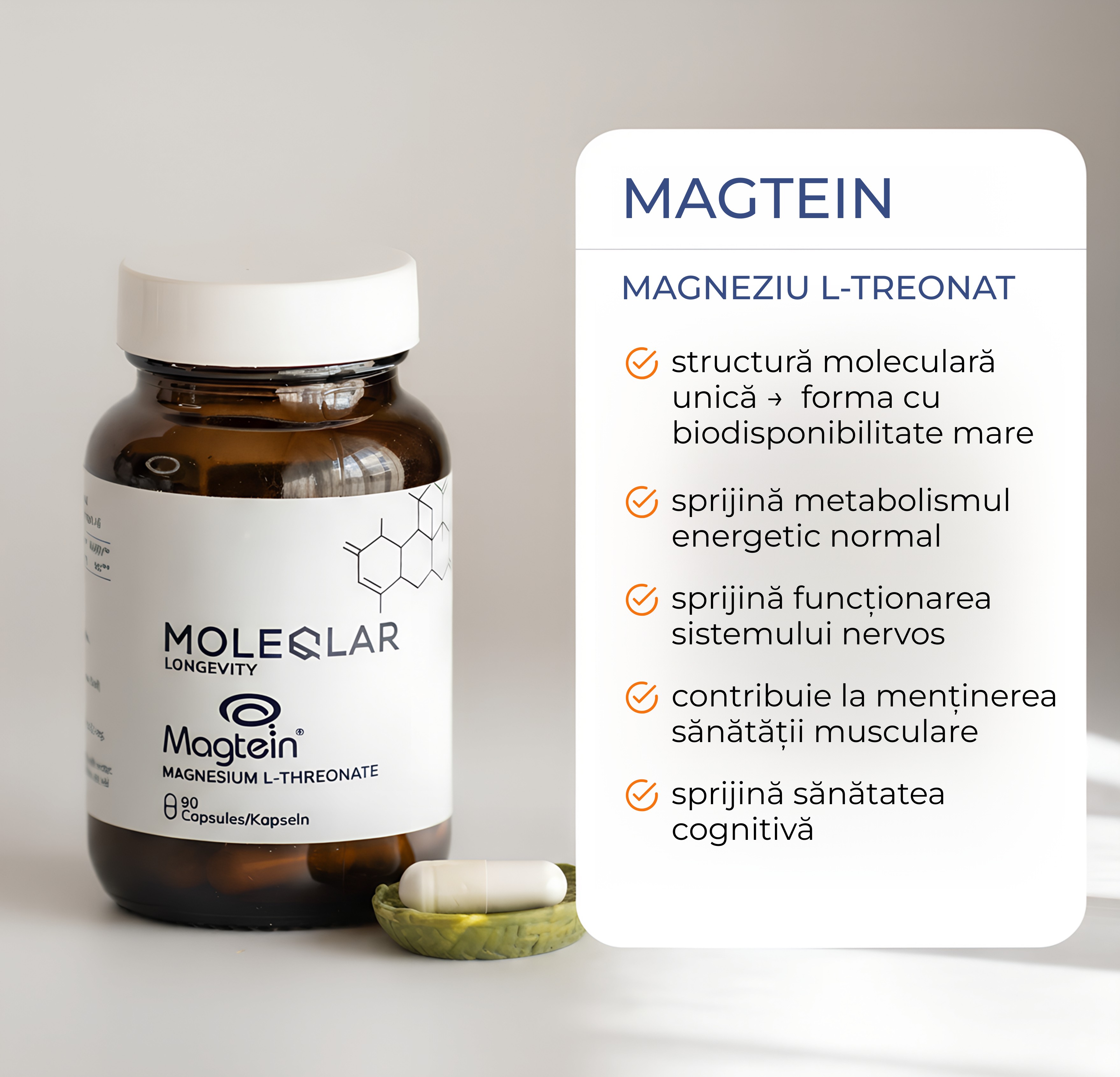 - Magneziu L-Treonat: Magtein® pur sub formă de capsule